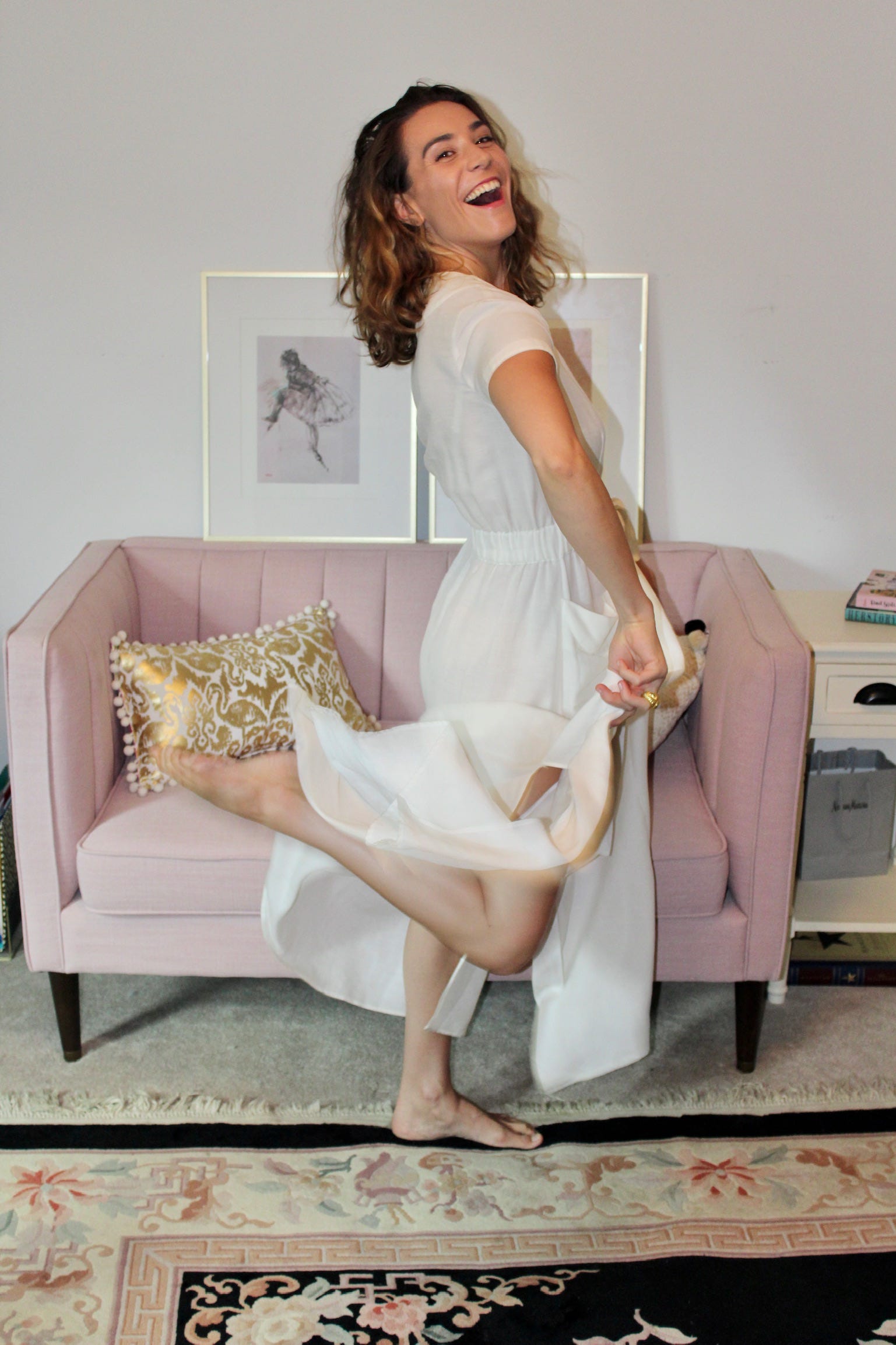 So here's to trying new things, to putting ourselves out there even when we don't know what the outcome will be, to surrendering to the things we can't control and enjoying the *process* of working toward the things we can. Half of the year might be gone already, but there is still another half to try something new (like start a "show" from the little pink couch in your home office, with an iPhone and a ring light tripod)! Much love to everyone who has tuned in to #eleanoralive so far, I am having a complete and total BLAST with this little series! 🎀 P.S., these joyfully imperfect photos where taken by @danieldmorrison, who put on "America" from West Side Story before we snapped them, because he just knows...💃🏻 XO, Ellie