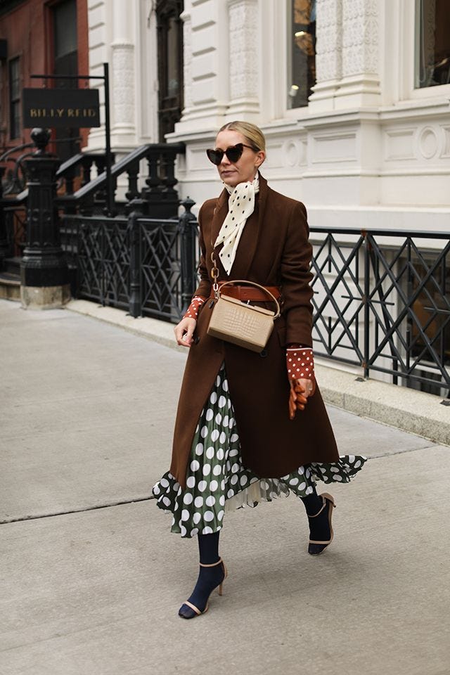2. The dress or skirt with oversized outerwear: